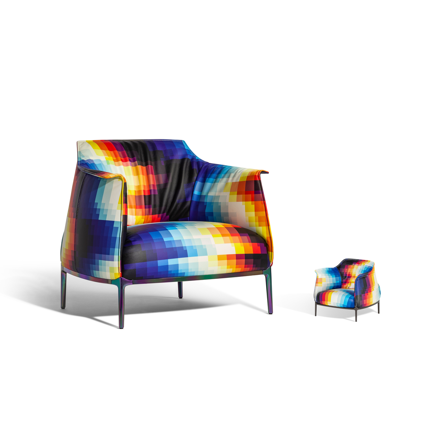 C’est la rencontre inattendue entre l’héritage et le savoir-faire manuel de Poltrona Frau et le langage optique et numérique, vibrant de couleurs, du street artist argentino-espagnol.
