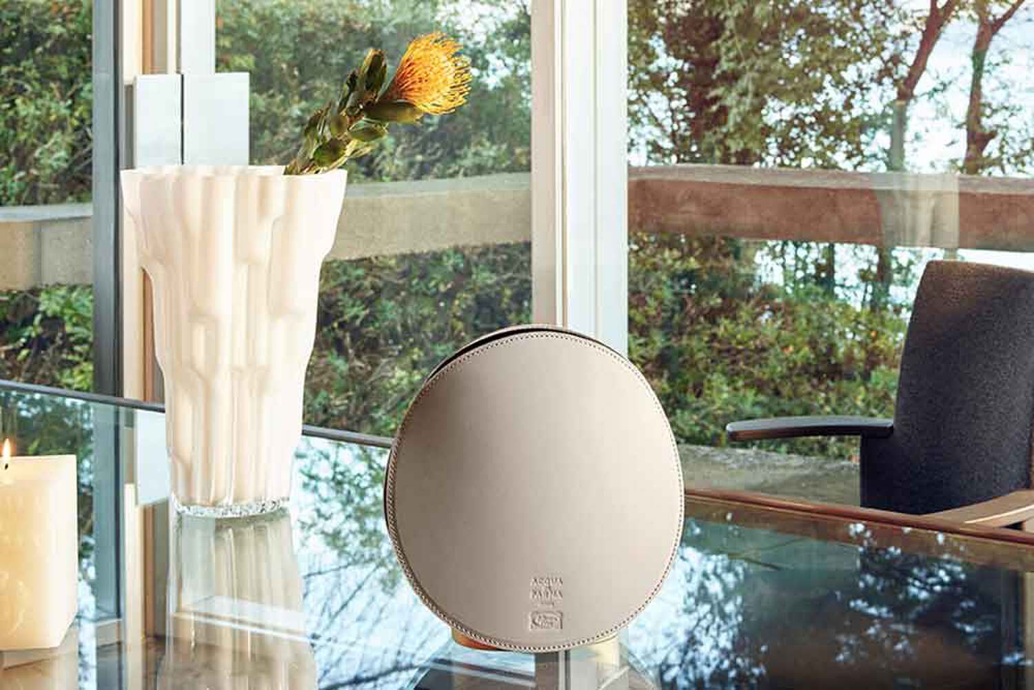 Con su sofisticada presencia escénica, el Smart Home Diffuser se inspira en la forma del círculo, que siempre ha pertenecido al universo de Acqua di Parma y a sus icónicas sombrereras. El diseño orgánico y minimalista se encuentra con la frescura de las fragancias de la Home Collection de Acqua di Parma.